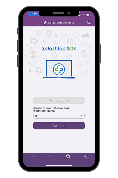 在 Splashtop Business 应用程序中输入9位代码以启动远程连接。按照以上步骤操作,您就可以开始远程支持您的最终用户!