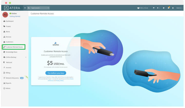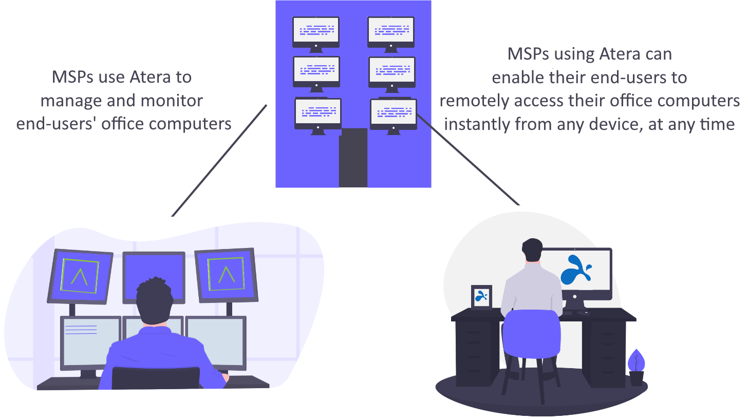 由 Splashtop 提供支持的 Atera 的客户远程访问功能允许使用 Atera 的 MSP 设置和管理其最终用户对办公计算机的远程访问。