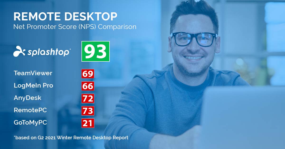 市面上有许 多远程桌面软件,但在可靠性、成本、易用性和客户服务方面,Splashtop 独树一帜,在业内获得的 NPS 分数最高。