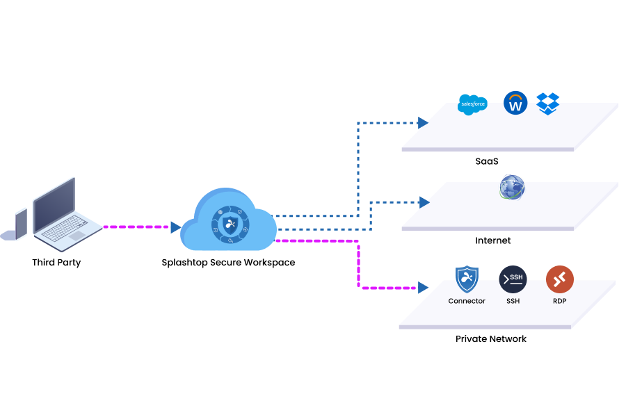 Splashtop Secure Workspace 的优势在于将零信任网络访问、特权访问管理、身份代理、安全 Web 网关、远程浏览器隔离等一系列网络安全技术无缝融合到了统一平台。不再受限于传统系统,可提供对私有 SaaS 应用程序的安全、无代理访问,能防止数据泄漏,同时提高安全性和可用性。