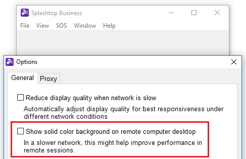 在远程计算机桌面上,通过文件 | 选项 | 显示纯色背景访问此功能