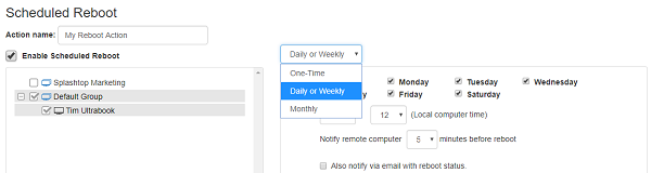 在一台或多台远程计算机上创建、计划、监视和执行“系统重新启动”任务。
