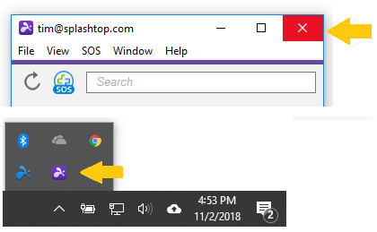 需要清理 Windows 任务栏上的一些空间,但仍想快速访问 Splashtop Business 应用?现在,点击 X 关闭应用后,您可以选择将其作为一个图标显示在 Windows 系统托盘中。
