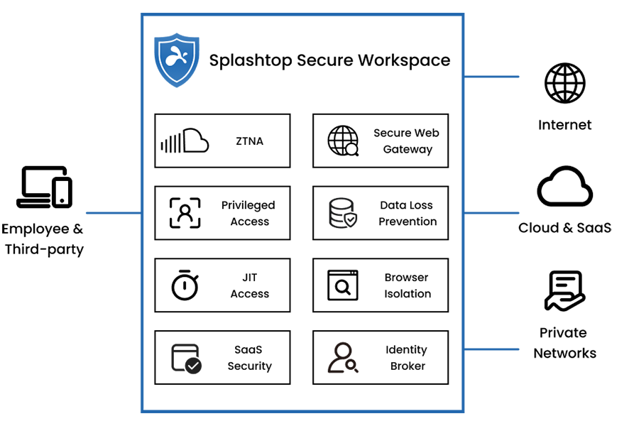 利用远程权限访问管理(RPAM),实现功能强大、无需凭证、有时限的即时(JIT)访问。利用远程浏览器隔离(RBI)防范互联网威胁和数据丢失。支持 BYOD、无客户端访问和非托管设备,涵盖 IT 和 OT 环境。